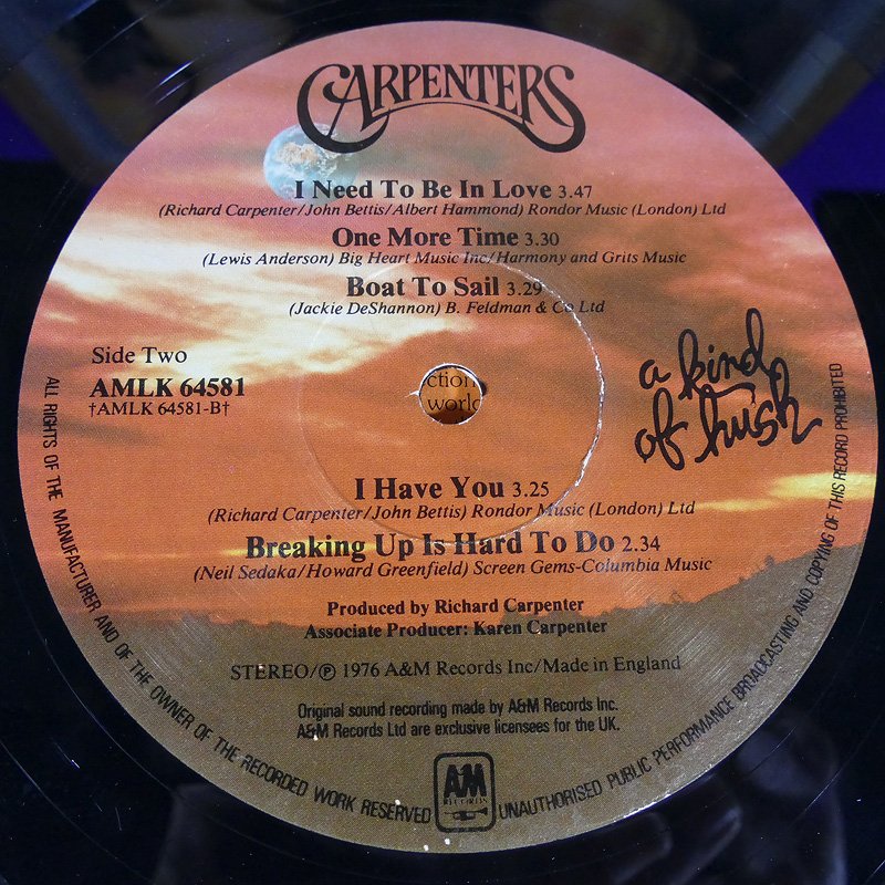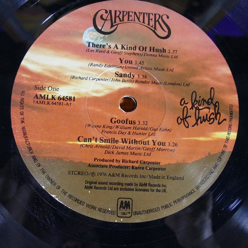 1.Carpenters A Kind Of Hush UK ปกVG++ แผ่นVG++ มีรอยบางๆเล็กน้อย 450