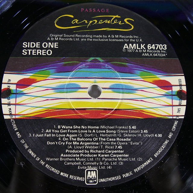 2.Carpenters Passage UK ปกVG++ แผ่นVG++ToNM มีรอยบางๆนิดเดียว 350