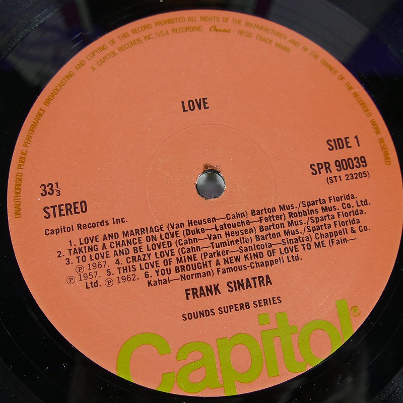 5.Frank sinatra Love UK ปกVG++ToNM แผ่นVG++ToNM มีรอยบางๆนิดเดียว 400