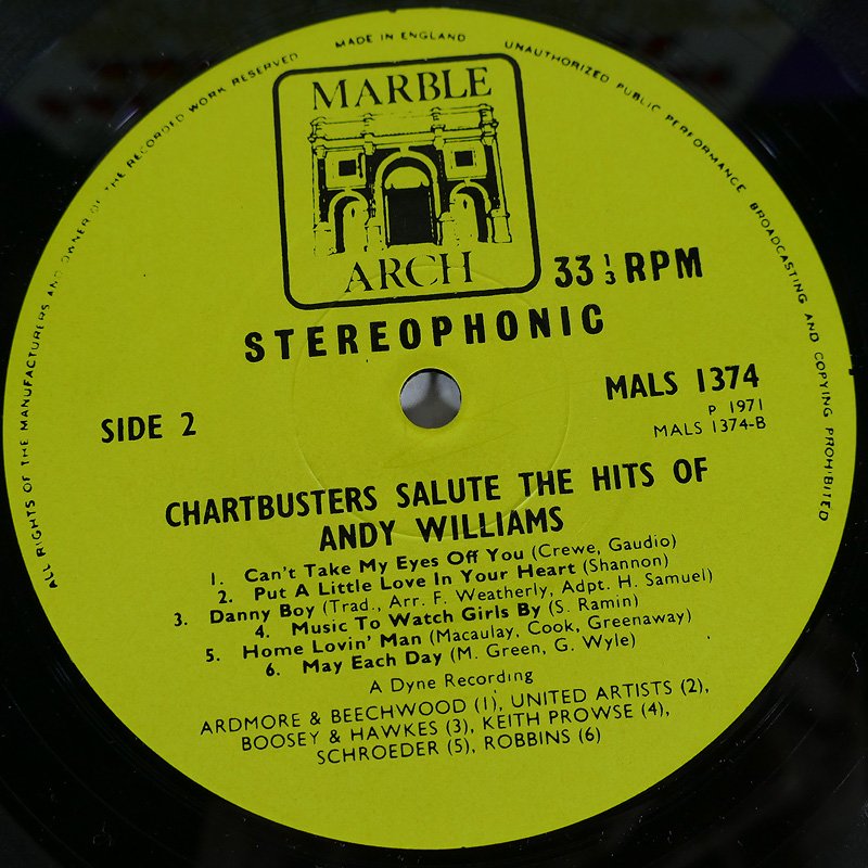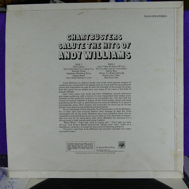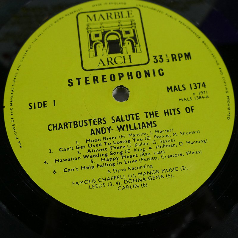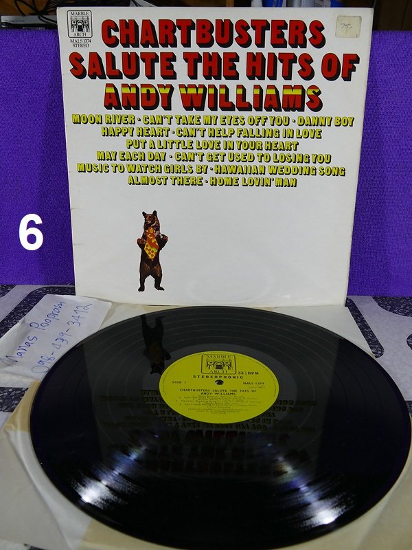 6.Andy Williams รวมเพลงดัง UK ปกVG++ แผ่นVG++ToNM มีรอยบางๆนิดเดียว 400