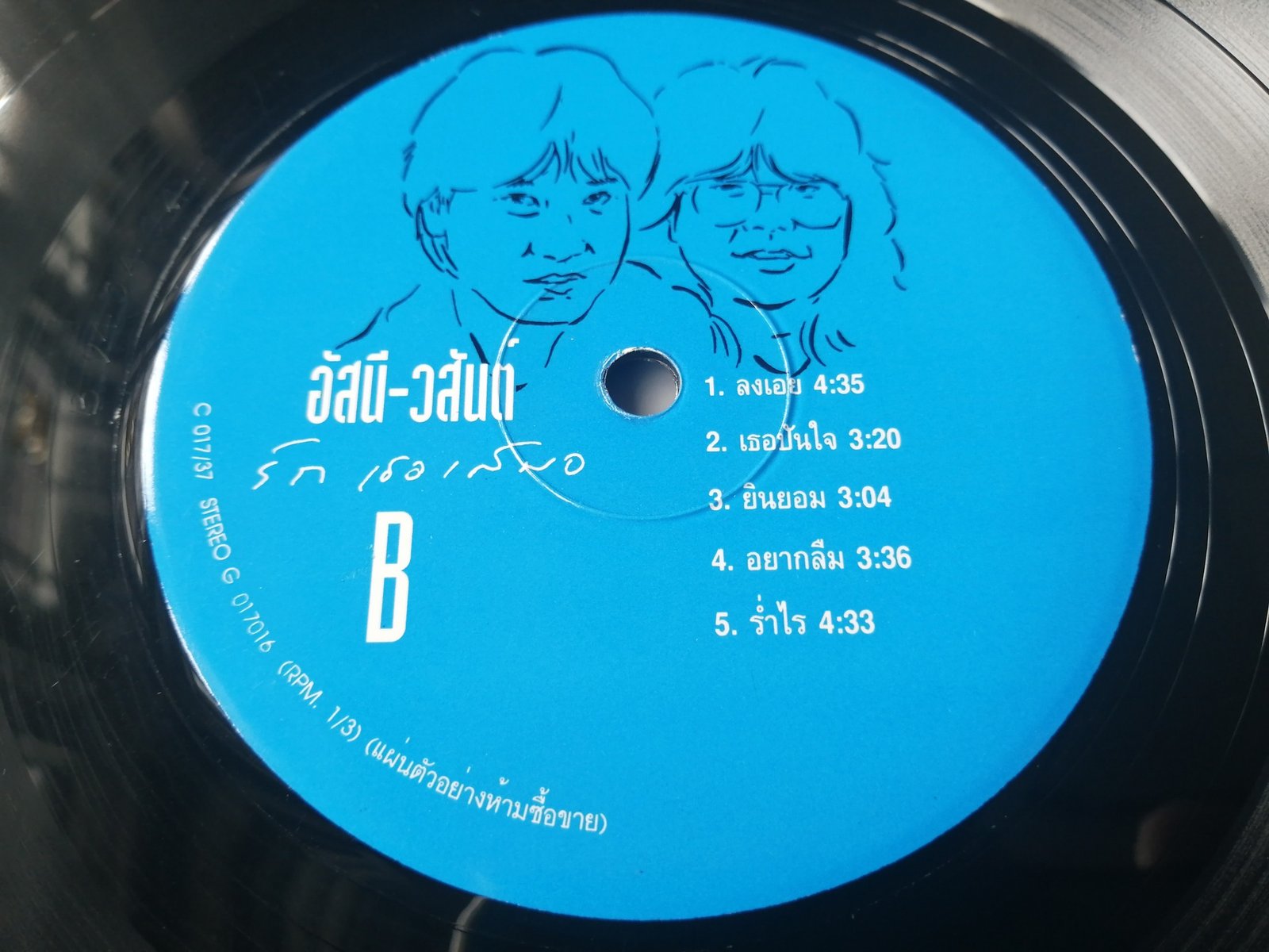 11. อัสนี-วสันต์ รวมฮิตรักเธอเสมอ ปก VG+ แผ่น VG+ รอยถือว่าน้อยแต่มองเห็นชัด แต่ลองเล่นแล้ว ตรงรอยแทบจะไม่มีผลกระทบกับเพลง 2,200.-