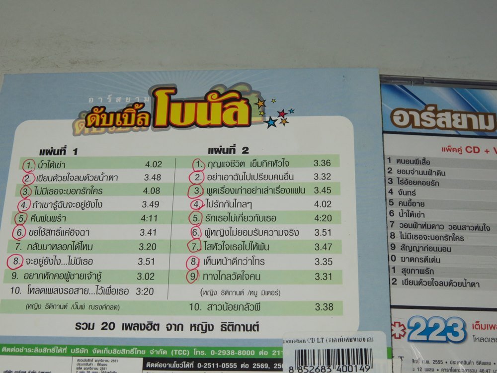 Quote from ocean on January 29, 2026, 4:12 pm103. อาร์สยาม ดับเบิ้ลโบนัส หญิง ธิติกานต์ มี 2 ซีดี 20 เพลง แผ่นโดยรวมสวย / 220-
