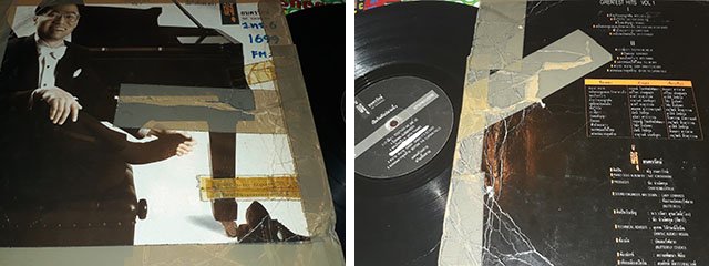 โปรดพิจารณาค่ะ แผ่นที่ 30 ณัฐ ยนตรรักษ์ /เปียโนกับปลายนิ้ว นำบทเพลงดัง ๆ มีเล่นเปียโน เพลงดังอาทิ ทั้งรู้ก็รัก, ก็เคยสัญญา, สบาย ๆ, ยินยอม, ขอบใจจริง ๆ ฯลฯ สภาพปก VG มีรอยสก๊อตเทปกาวรอบปก รอยขาดนำสก๊อตเทปกาวมาปิดไว้ สภาพแผ่น VG + เป็นขนแมวเยอะ มีเสียงรบกวน แต่เล่นได้ ราคา 250 บาทค่ะ ชุดนี้มี 2 แผ่นนะค่ะ