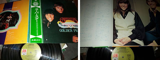 แผ่นที่ 39 CARPENTERS GOLDEN PRIZE ปกเปิด แผ่นประเทศญี่ปุ่น เพลงดัง (THEY LONG TO BE) CLOSE TO YOU, HELP, FOR ALL ME KNOW, I'LL NEVER FALL IN LOVE AGIAN, LADY DAY AND MONDAY ฯลฯ ราคา 300 บาทค่ะ สภาพแผ่น VG +++ เงาสวย