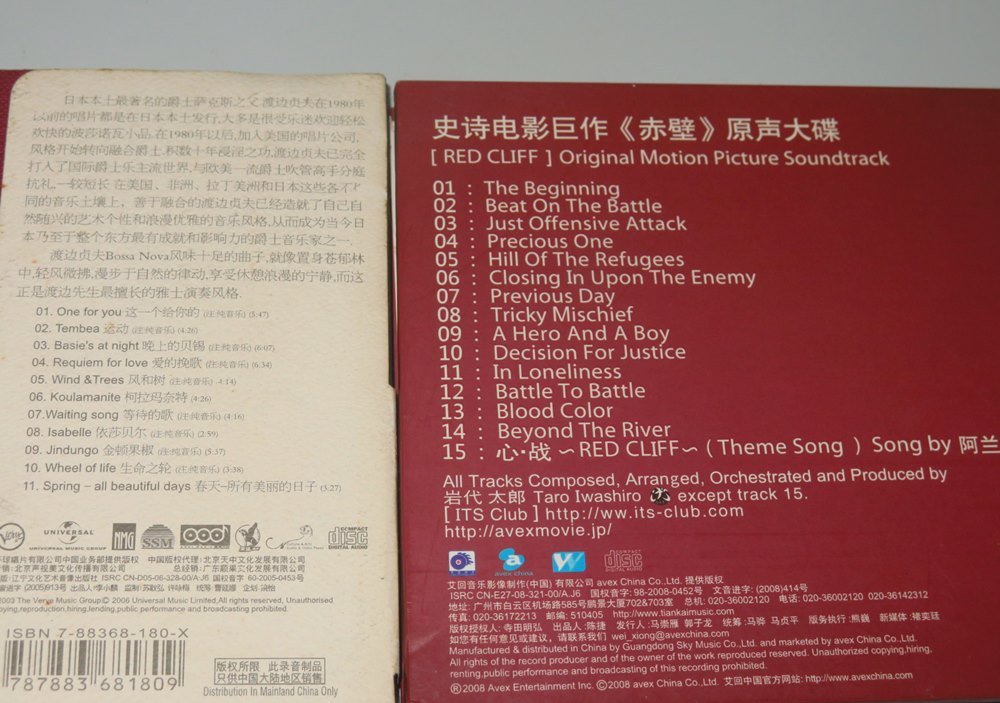 84. Red Cliff Original Motion Picture Soundtrack Music by Taro Iwashiro มี 15 เพลง แผ่นสวย แผ่นจีน / 100-
