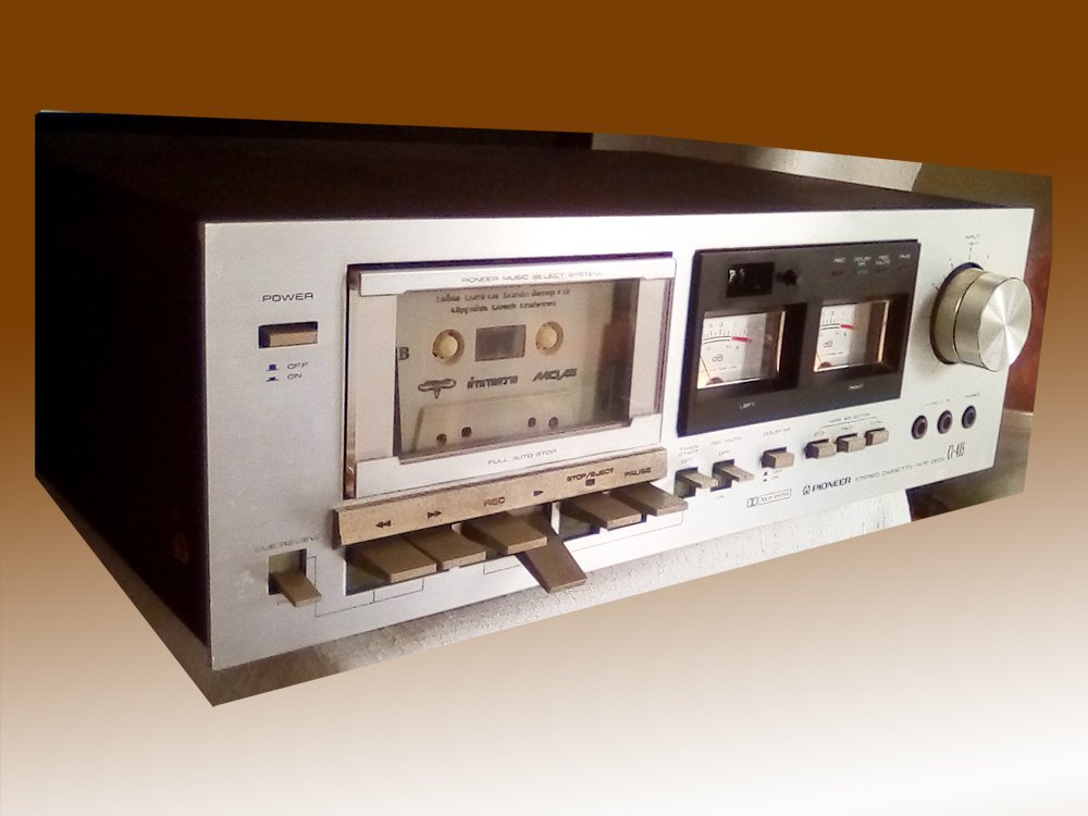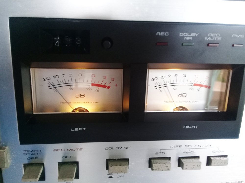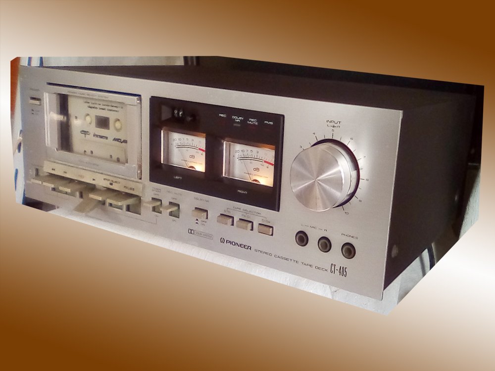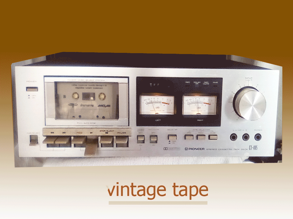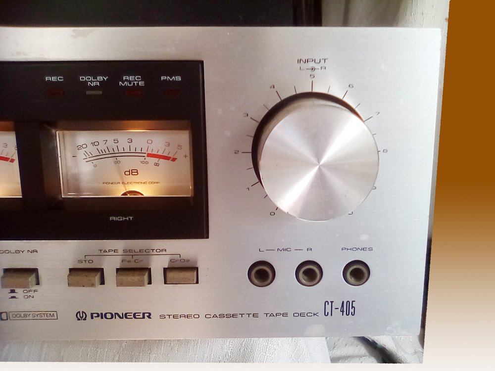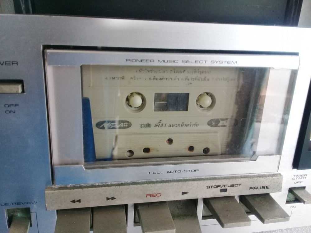 เครื่องเล่น tape pioneer vintage ct405 ใช้ไฟบ้านเราได้เลย เล่น กรอเทป ไปมาได้ ตัวเลขเค้าเตอร์หมุน เสียงดี มี vu แบบเข็ม ขยับไปมาตามจังหวะของเสียง ไฟ vu ติด 2 ข้าง หลังเครื่องมีตำหนิที่สีถลอกบ้าง ข้างหน้าเครื่องยังสวยมาก