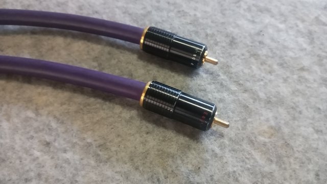 ขาย สายสัญญาน Eagle "สีม่วง" ตัวนำ SC OCC (Silverplated - Ohno Continuous Casting Copper) Made in Germany เสียงดีมากครบเครื่อง (อาจารย์ไมตรีฯ เคยใช้ในชุดทดสอบเครื่องเสียง และให้เครดิตกล่าวชื่นชมไว้มากมาย) ตัวสายสภาพดีประกอบหัว RCA ของ Eagle จากโรงงาน ความยาว 0.75 เมตรราคา 1,900 บาท